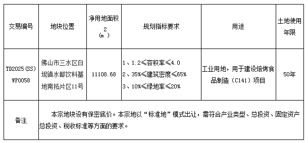 五、有意参与竞买者可于2025年10月31日后登录网上交易系统下载TD2025(SS)WP0058地块的《佛山市三水区国有建设用地使用权网上拍卖出让文件》。