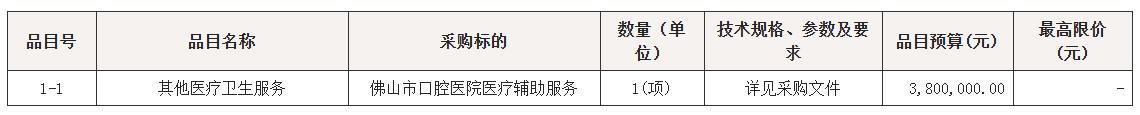 佛山市口腔医院医疗辅助服务项目(二次)招标公告
