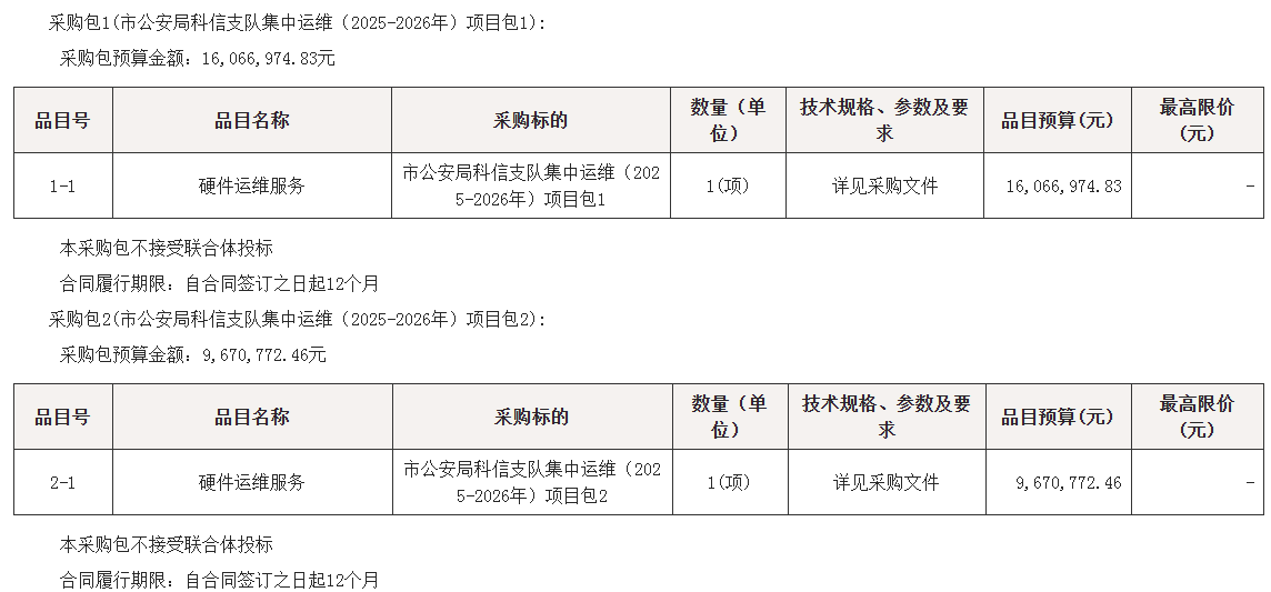 佛山市公安局科信支队集中运维(2025-2026年)项目招标公告