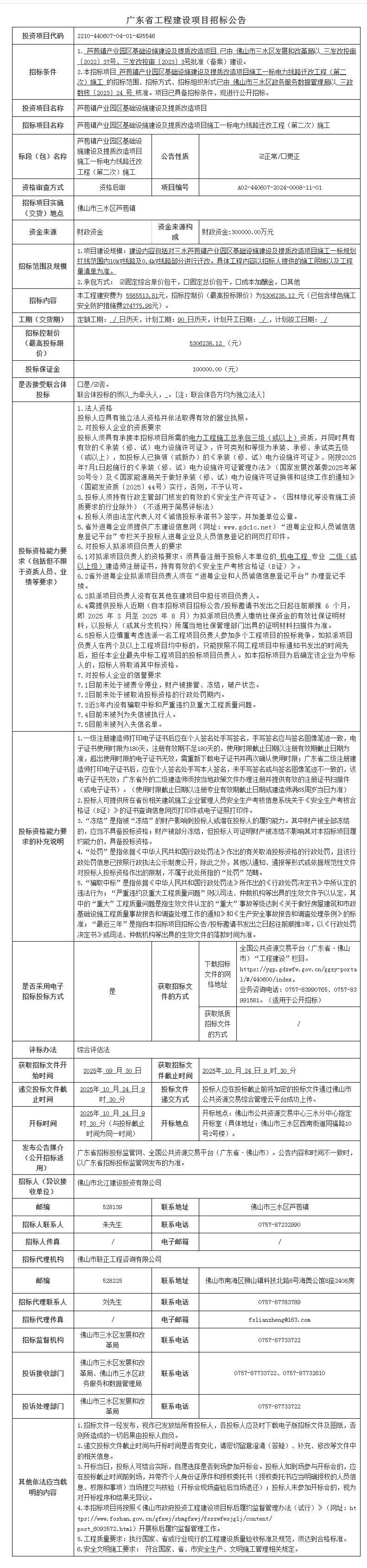 三水芦苞镇产业园区基础设施建设及提质改造项目施工一标电力线路迁改工程(第二次)施工招标公告