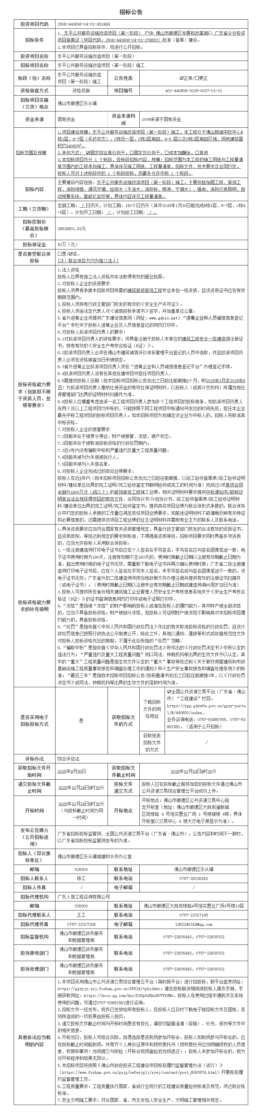 顺德乐从东平公共服务设施改造项目(第一阶段)施工招标公告