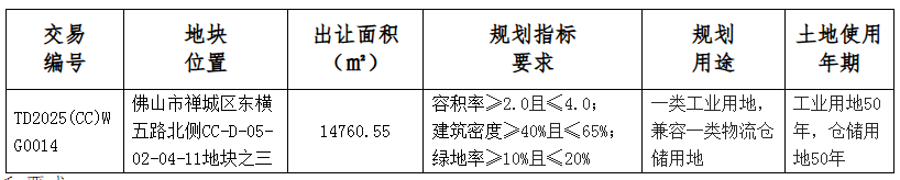 佛山市禅城区东横五路北侧CC-D-05-02-04-11地块之三网上挂牌出让