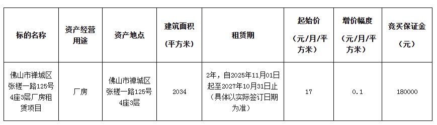 4.产权证照情况:有产权证照(竞买人应充分考虑其风险,一经存入竞买保证金即表示承认、接受本项目的现状,愿意按约定支付租赁价款和遵守租赁合同的约定)。