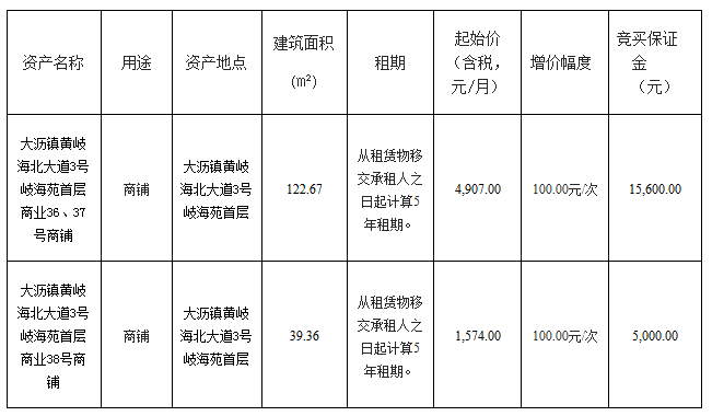南海大沥镇黄岐海北大道3号岐海苑首层商业36、37号商铺等两项物业出租项目