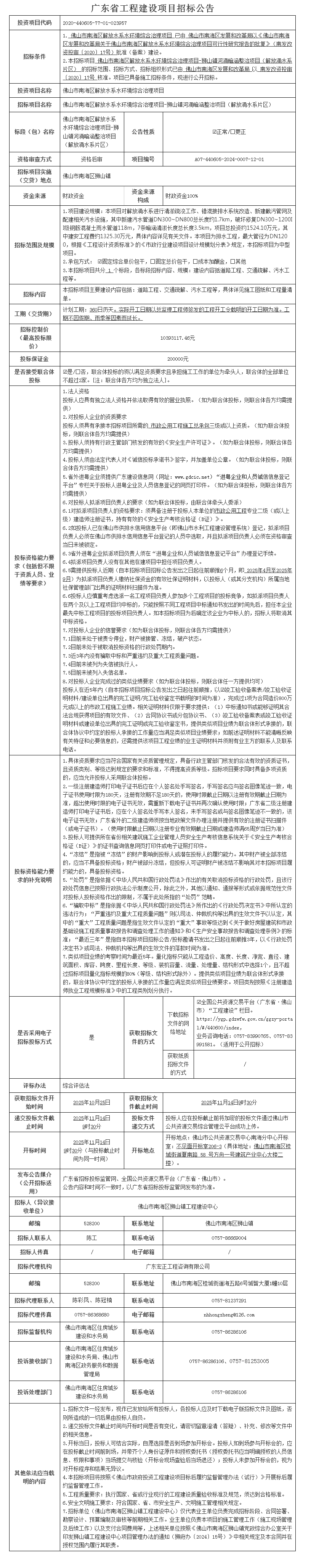 佛山市南海区良安水系水环境综合治理项目—狮山镇河涌暗涵整治项目(良安水系片区)招标公告