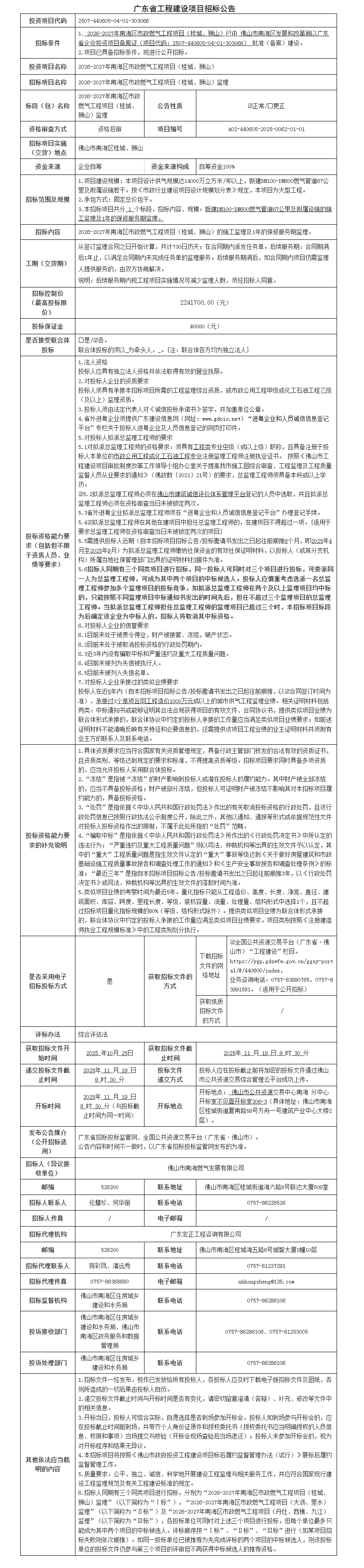 2026-2027年南海区市政燃气工程项目(桂城、狮山)监理招标公告