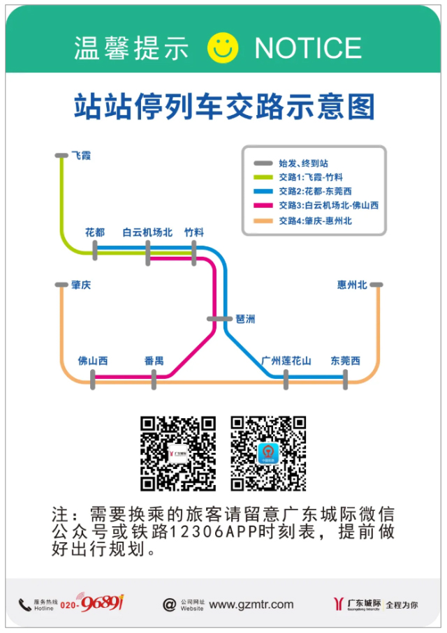 广东城际温馨提醒,运行图调整后,列车开行时间将相应有所调整,旅客可通过“广东城际”微信公众号、12306等提前了解列车发车时间,预留充足换乘时间,以免耽误行程。