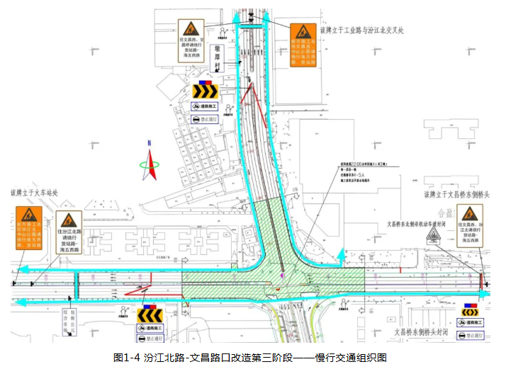 ▲恢复文昌西路慢行通道、恢复汾江北路慢行通道。封闭文昌桥东侧桥头北侧慢行,引导行人利用南侧慢行道通行。
