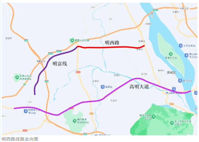 例如,从西江产业新城片区前往杨和镇、盈香心动乐园的车辆,原绕行高明大道需25-30分钟,现在通过明西路可缩短至15-20分钟,节省约30%时间,减少跨区域通勤的绕行距离。