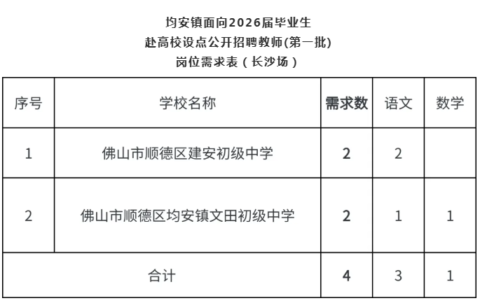 招聘基本资料、程序、要求以及相关事项详见《佛山市顺德区教育局面向2026届毕业生赴高校设点公开招聘教师(第一批)公告》。