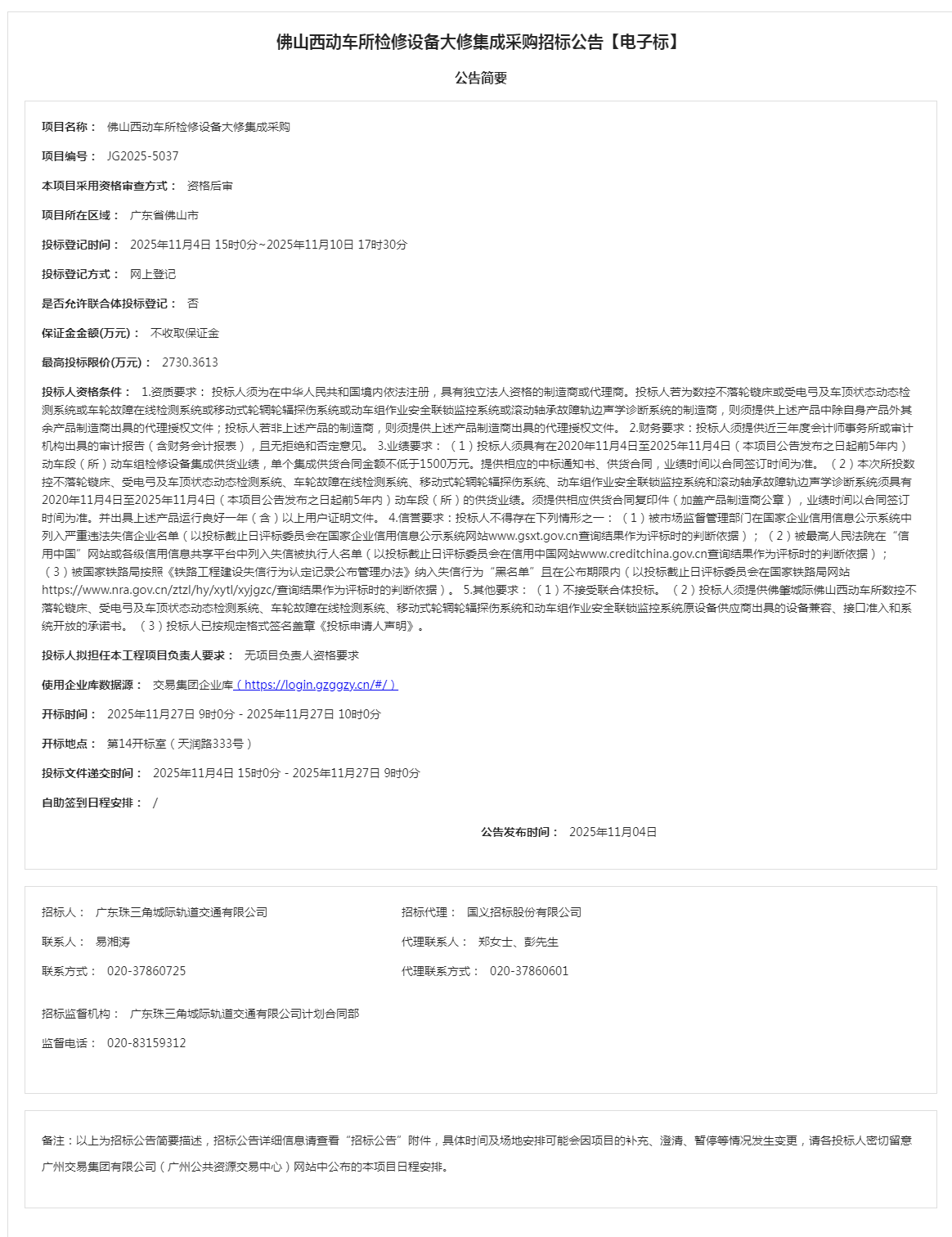 时间:2025-11-07 人气:65 来源:佛山市公共资源交易信息化综合平台 作者: