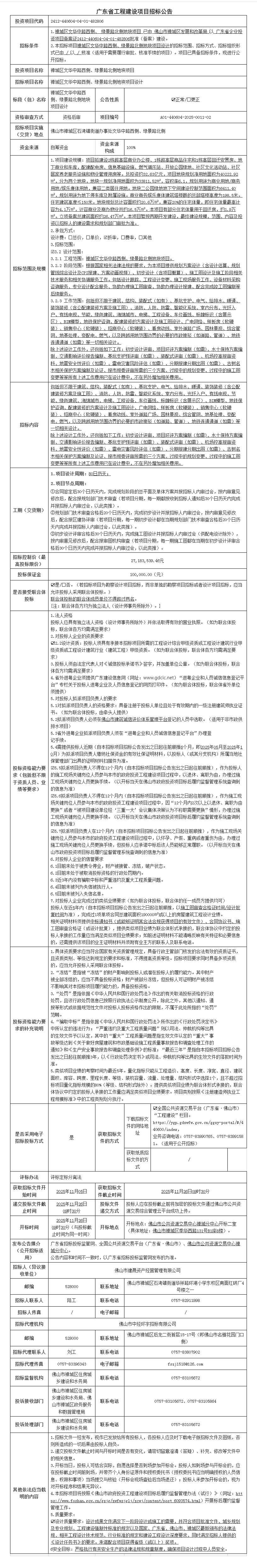 禅城区文华中路西侧、 绿景路北侧地块项目设计招标公告