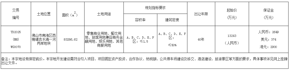 经佛山市人民政府批准,佛山市自然资源局决定委托佛山市公共资源交易中心南海分中心采用网上挂牌方式出让下列地块的国有建设用地使用权。现将有关事项公告如下: