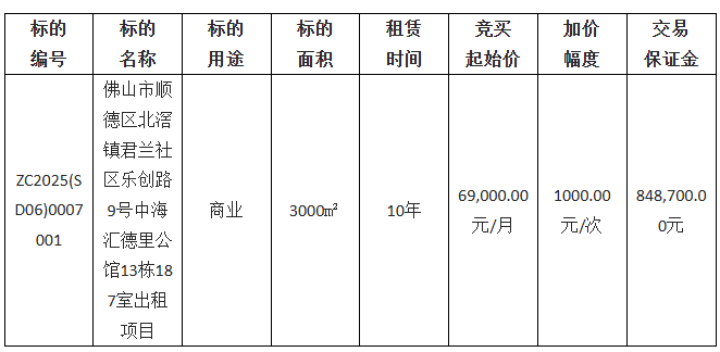 7.合同保证金:以中标月租金的全额为计算基础乘以3个月的租金总和 。