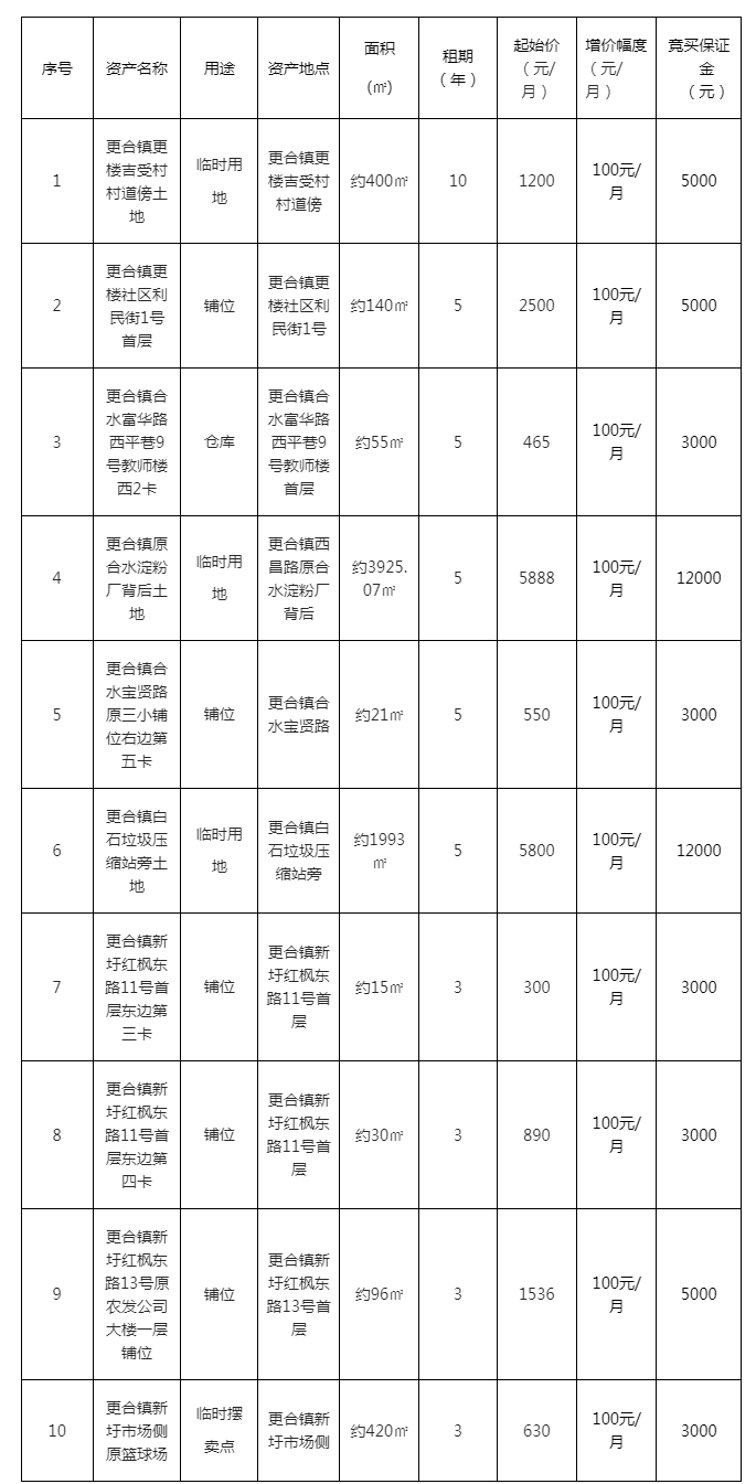 4.租金收取方式:标的1、4、6、10的租金按年支付,标的2、3、5、7-9的租金按每半年支付,都采取先付款后使用的模式。