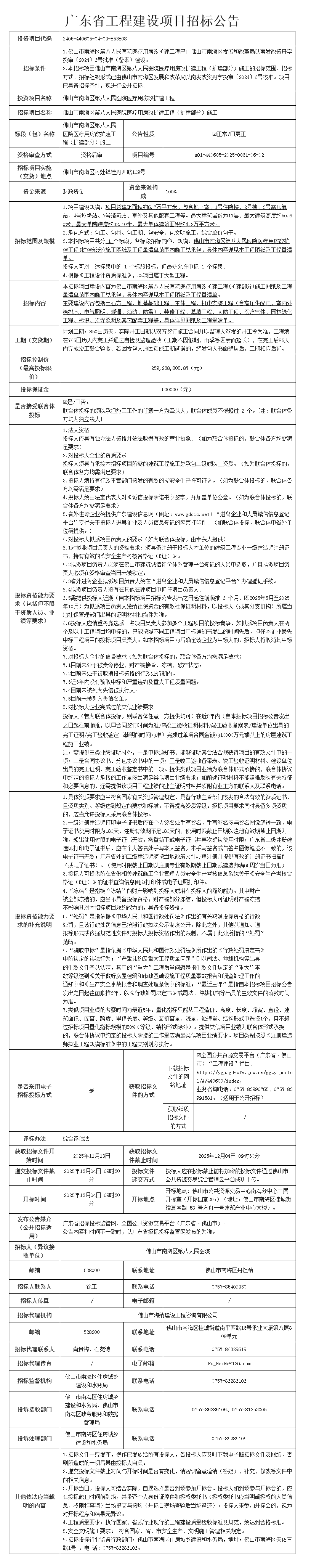 佛山市南海区第八人民医院医疗用房改扩建工程(扩建部分)施工招标公告