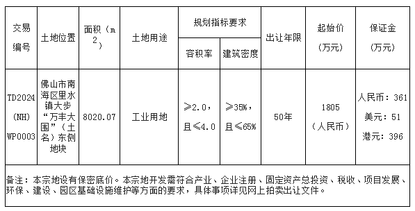 八、自本次公告起至网上拍卖截止期间,如有关于本宗地竞买文件的修改、澄清、说明等将通过网上交易系统以及佛山市南海区人民政府网发布,请有意参与竞买者密切留意。其它未尽事宜,详见本宗地的网上拍卖出让文件。