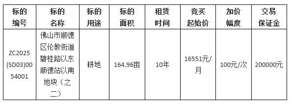 1.项目名称:佛山市顺德区伦教街道碧桂路以东顺德站以南地块(之二)公开招租项目