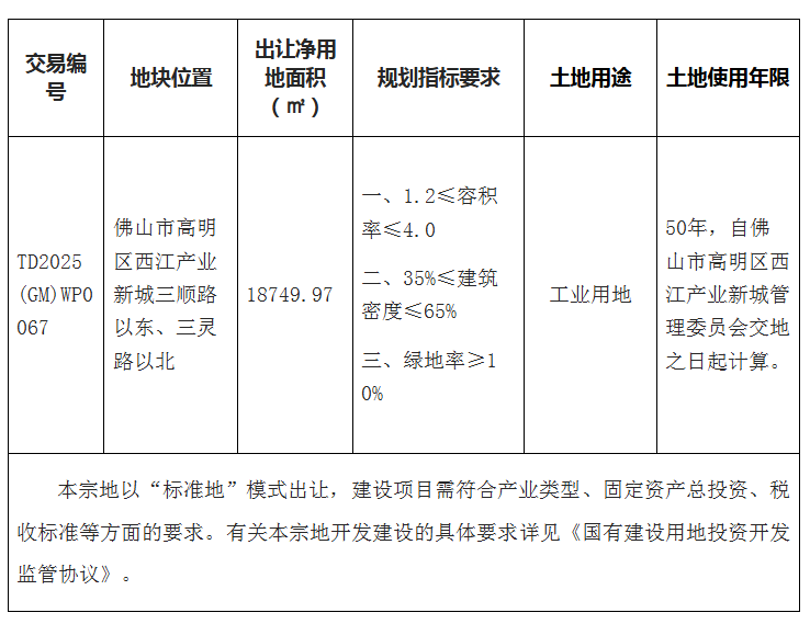 五、有意参与竞买者可于2025年11月14日后登录网上交易系统下载TD2025(SS)WP0069地块的《佛山市三水区国有建设用地使用权网上拍卖出让文件》。