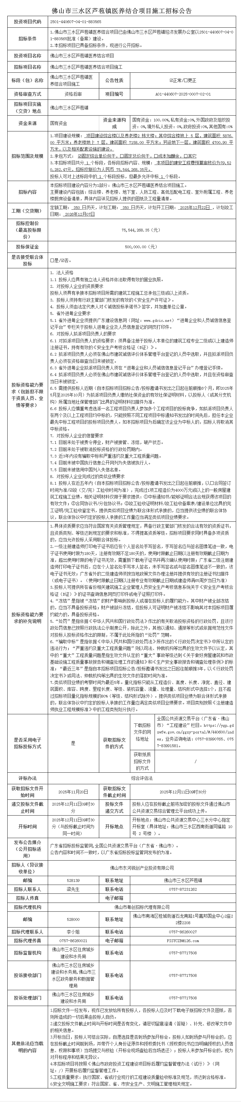 佛山市三水区芦苞镇医养结合项目施工招标公告