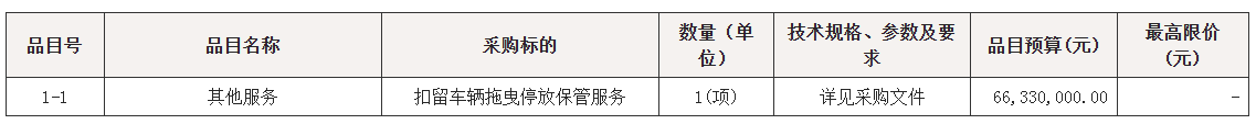 项目名称:扣留车辆拖曳停放保管服务采购项目