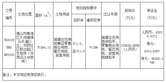 经佛山市人民政府批准,佛山市自然资源局决定委托佛山市公共资源交易中心南海分中心采用网上拍卖方式出让下列地块的国有建设用地使用权。现将有关事项公告如下: