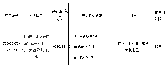 五、有意参与竞买者可于2025年12月1日后登录网上交易系统下载TD2025(SS)WP0078地块的《佛山市三水区国有建设用地使用权网上拍卖出让文件》。