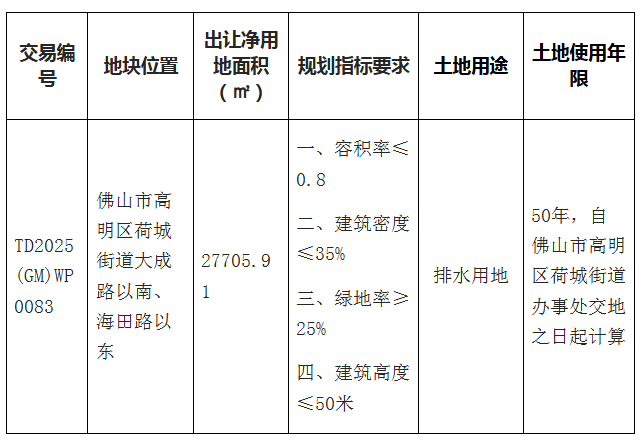 本块地其他规划建设要求按《高明区土地使用规划条件》(佛规明设函〔2025〕0128号)执行。