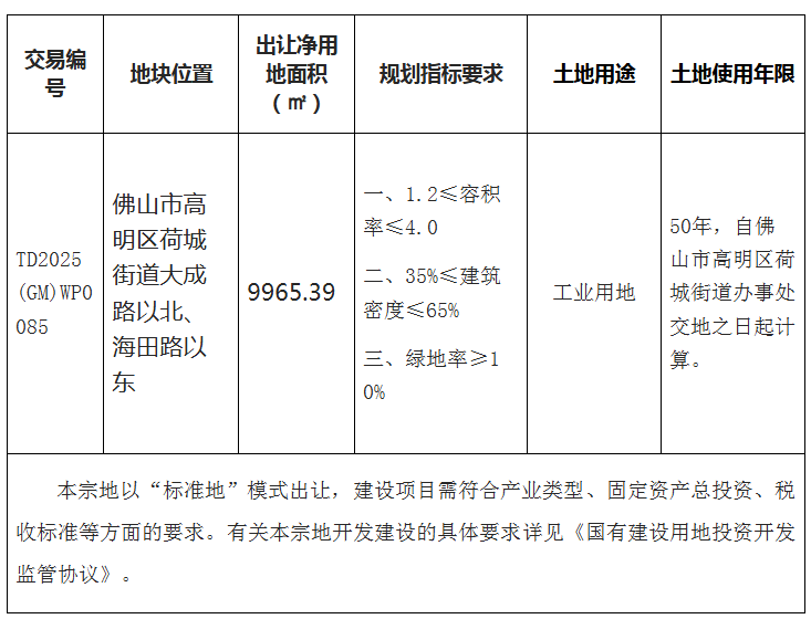 五、有意参与竞买者可于2025年12月1日后登录网上交易系统下载该地块的《佛山市高明区国有建设用地使用权网上拍卖出让文件》。