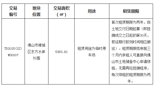 概述:经佛山市人民政府批准,受佛山市自然资源局(以下称委托人)委托,本中心(以下称拍卖人)现采用网上拍卖方式出让以下地块的国有建设用地使用权......