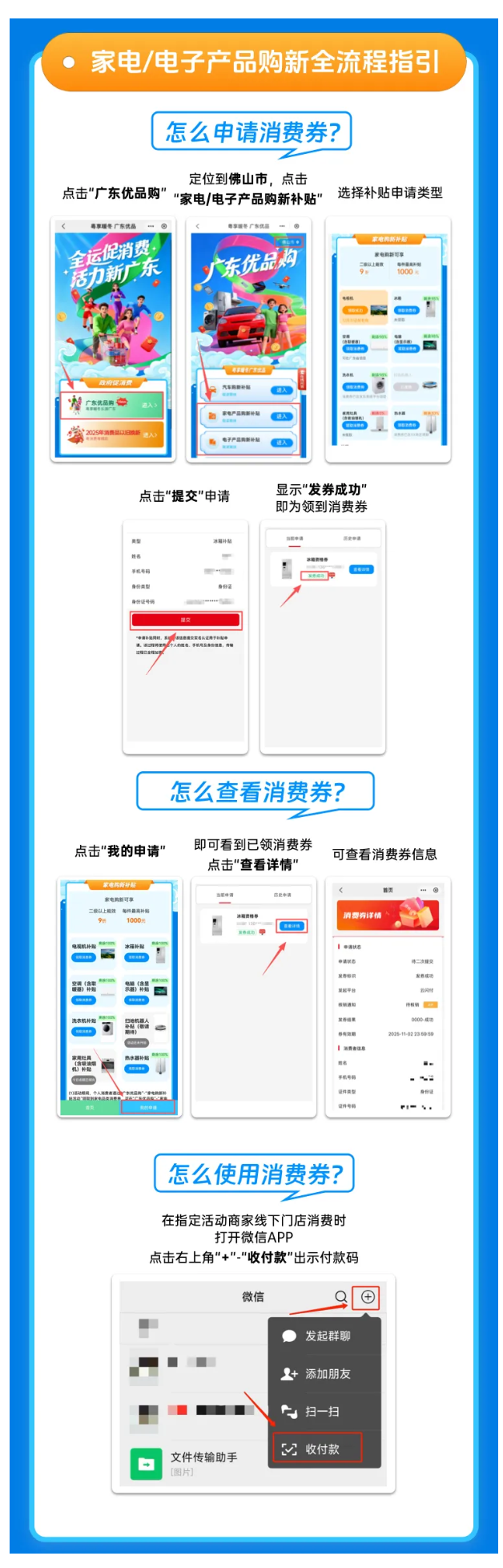 自11月7日以来,“佛山优品购”促消费活动收到了社会热烈反响,为进一步方便广大消费者,家电与电子产品消费券现已开设微信端申领入口。用券立减10%,家电最高优惠1000元,电子产品最高优惠500元,优惠点击即享,赶紧下拉解锁优惠指南吧。汽车优品消费券、佛山特色优品消费券微信端申领入口正在开通中,敬请期待。