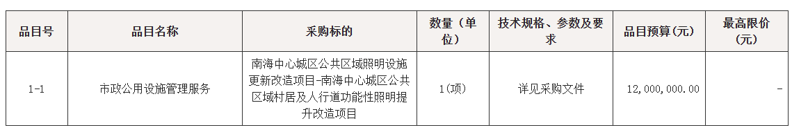 南海中心城区公共区域照明设施更新改造项目-南海中心城区公共区域村居及人行道功能性照明提升改造项目招标公告