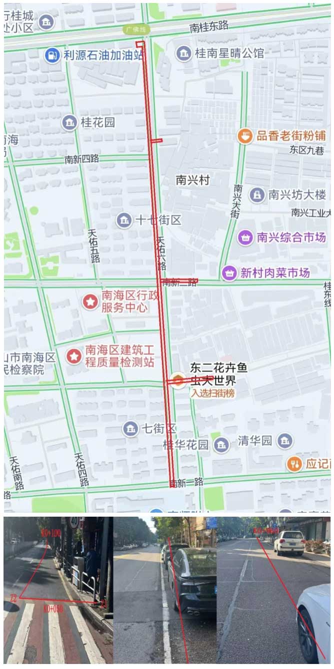 1.占用范围:南桂东路至南新一路段方向的右侧车行道(红色范围)。