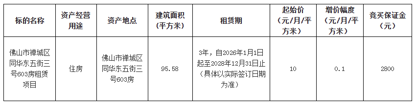 4.产权证照情况:有产权证照(竞买人应充分考虑其风险,一经存入竞买保证金即表示承认、接受本项目的现状,愿意按约定支付租赁价款和遵守租赁合同的约定)。
