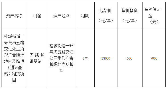 > 南海桂城街道一环与海五路交汇处三角形广告牌场地内及牌顶(通讯基站)租赁项目