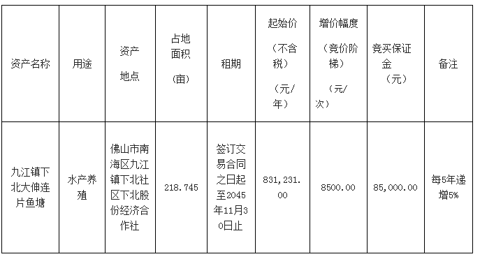 2.佛山市公共资源交易中心南海分中心通过佛山市资产交易网上交易系统及粤公平网站发布的项目信息(包括但不限于公告信息、交易文件、合同条款等)并不构成佛山市公共资源交易中心南海分中心对项目的任何交易建议。意向竞买人应不依赖于已披露的项目信息并自行对项目的相关情况进行必要的尽职调查和充分了解,对是否竞买该项目及项目成交后可能发生的费用和存在的风险自行作出充分评估,并独立承担所有风险。意向竞买人一经申请参加竞买,即视为知晓、认可项目现状,佛山市公共资源交易中心南海分中心对此不承担任何法律责任。
