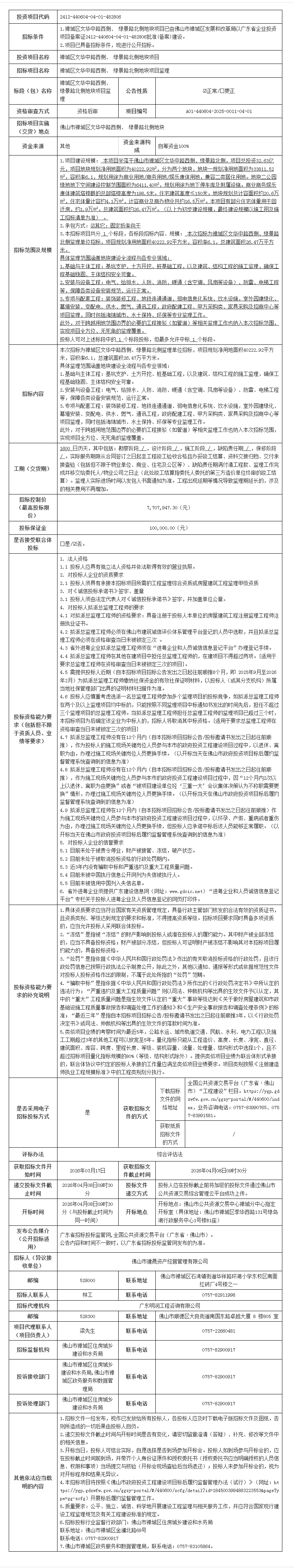 禅城区文华中路西侧、 绿景路北侧地块项目监理招标公告