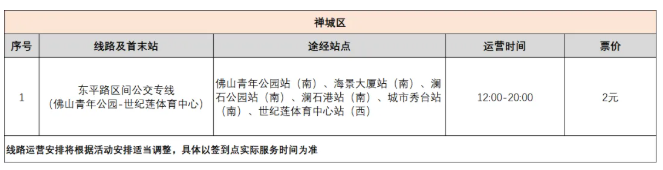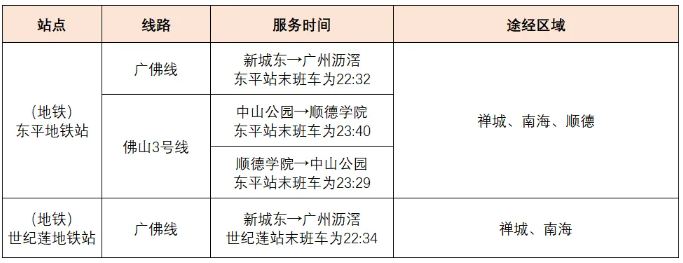 终点开设高明、三水活动专线,专线服务时间为18:00-22:00