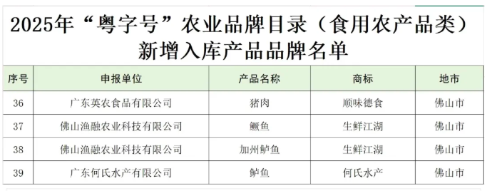 概述:近日,2025年“粤字号”农业品牌目录(食用农产品类)正式公布,全省共有905个产品品牌成功入选。其中,佛山市新增入库产品品牌名单4个......