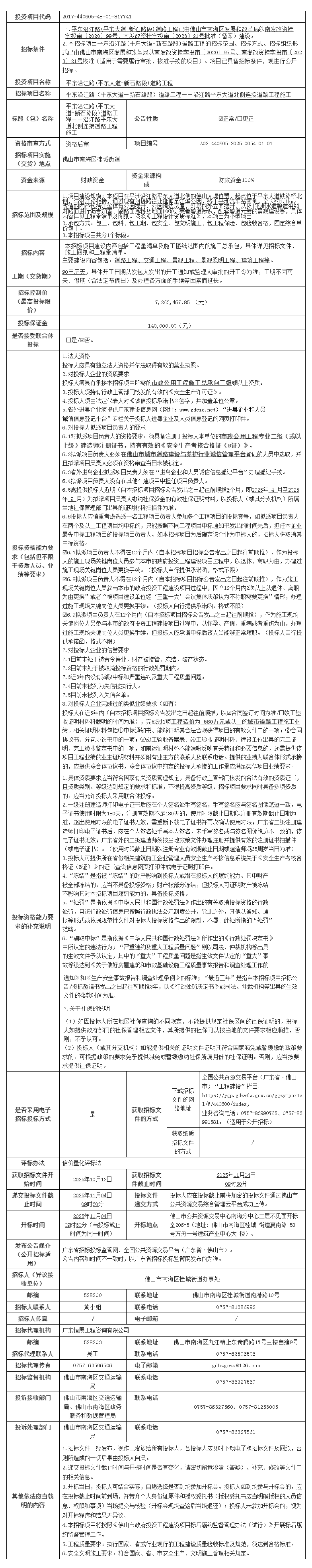南海桂城平东沿江路(平东大道—新石路段)道路工程——沿江路平东大道北侧连接道路工程施工招标公告
