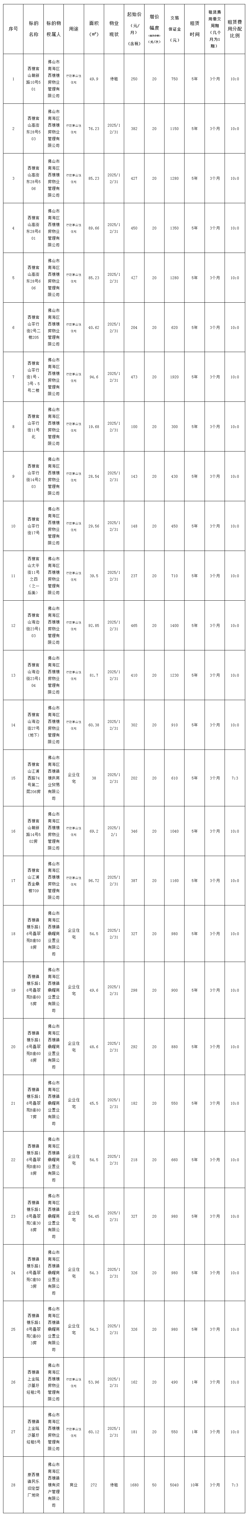 5.上述物业均按现状招租。表内面积数据仅供参考,以实际交付面积为准,不影响租赁费用标准。