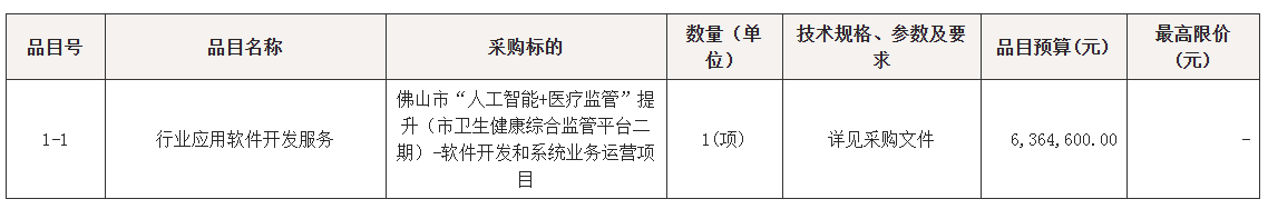 > 佛山市“人工智能+医疗监管”提升(市卫生健康综合监管平台二期)-软件开发和系统业务运营项目招标公告