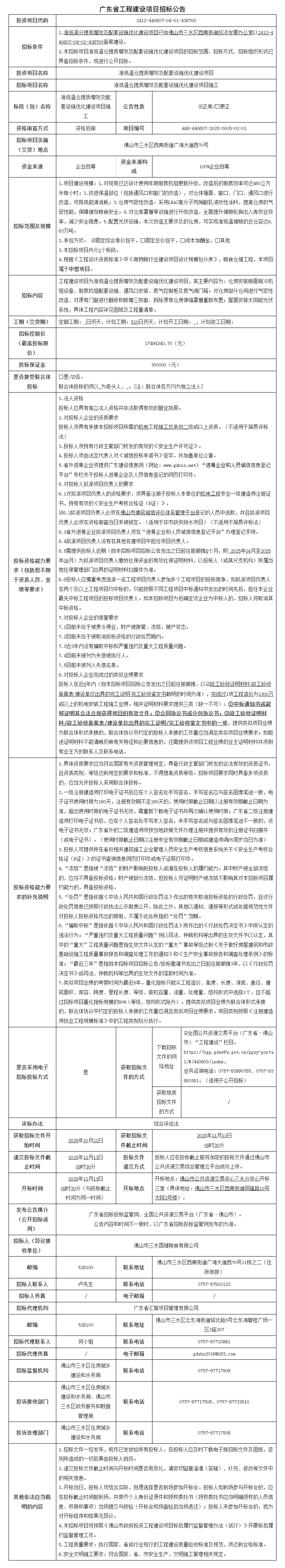 佛山市三水黎北盛路片区雨污分流工程施工招标公告