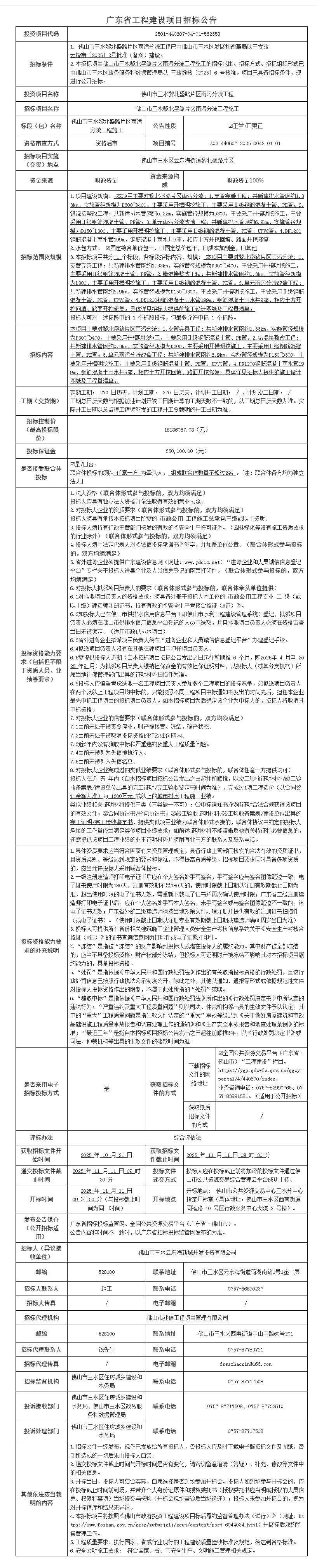概述:本招标项目佛山市三水黎北盛路片区雨污分流工程施工的招标范围、招标方式、招标组织形式已由佛山市三水区政务服务和数据管理局以 三政数核〔2025〕6 号核准......