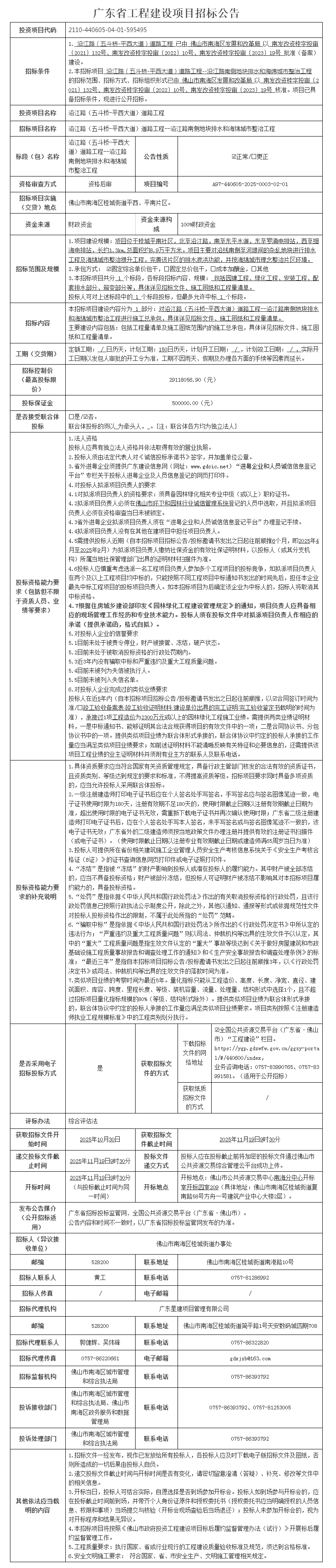 南海区沿江路(五斗桥-平西大道)道路工程--沿江路南侧地块排水和海绵城市整治工程招标公告