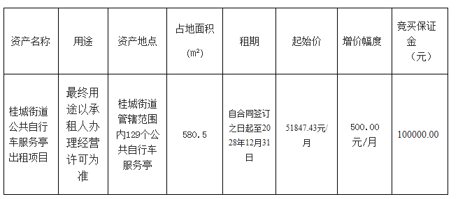 (4)桂城街道公共自行车服务亭概况表详见竞价文件第三章。