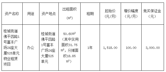 南海桂城街道佛平四路1号富丰广场24座大厦525单元物业租赁项目
