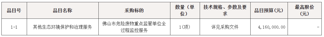 佛山市危险废物重点监管单位全过程监控服务项目(第二次)招标公告