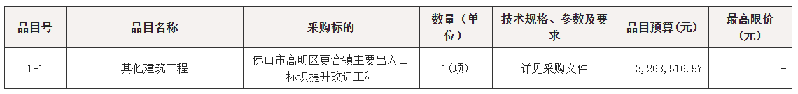 概述:佛山市高明区更合镇主要出入口标识提升改造工程采购项目的潜在供应商应在广东省政府采购网https://gdgpo.czt.gd.gov.cn/获取采购文件......