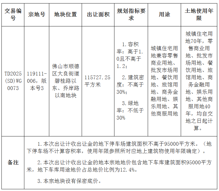 十一、自本次公告起至网上挂牌截止期间,如有关于本地块网上挂牌文件的修改、澄清、说明等将通过网上交易系统、佛山市顺德区公共资源交易中心网站发布,请有意参与竞买者密切留意。其它未尽事宜,详见该地块的交易文件。